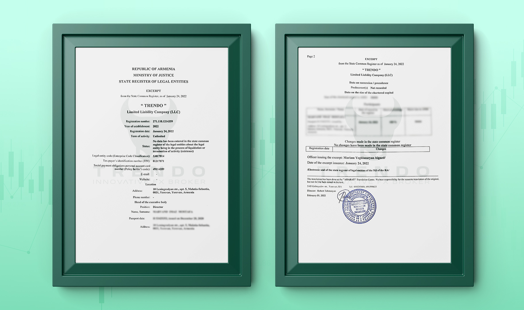 Trendo has officially completed its corporate registration in the Republic of Armenia, securing a credible legal position in the global financial services industry. This move reflects our firm commitment to financial transparency, cross-border regulatory compliance, and customer trust worldwide.