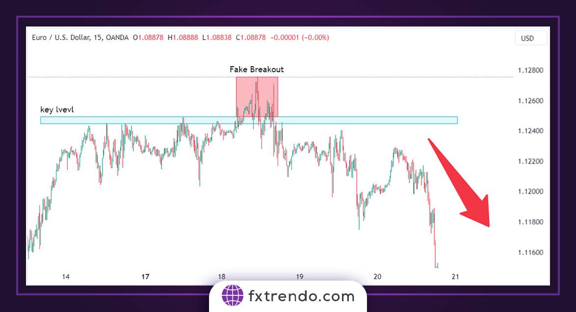 The chart below shows a EURUSD fakeout in the 15-minute time frame.