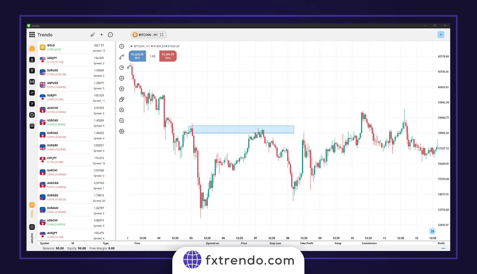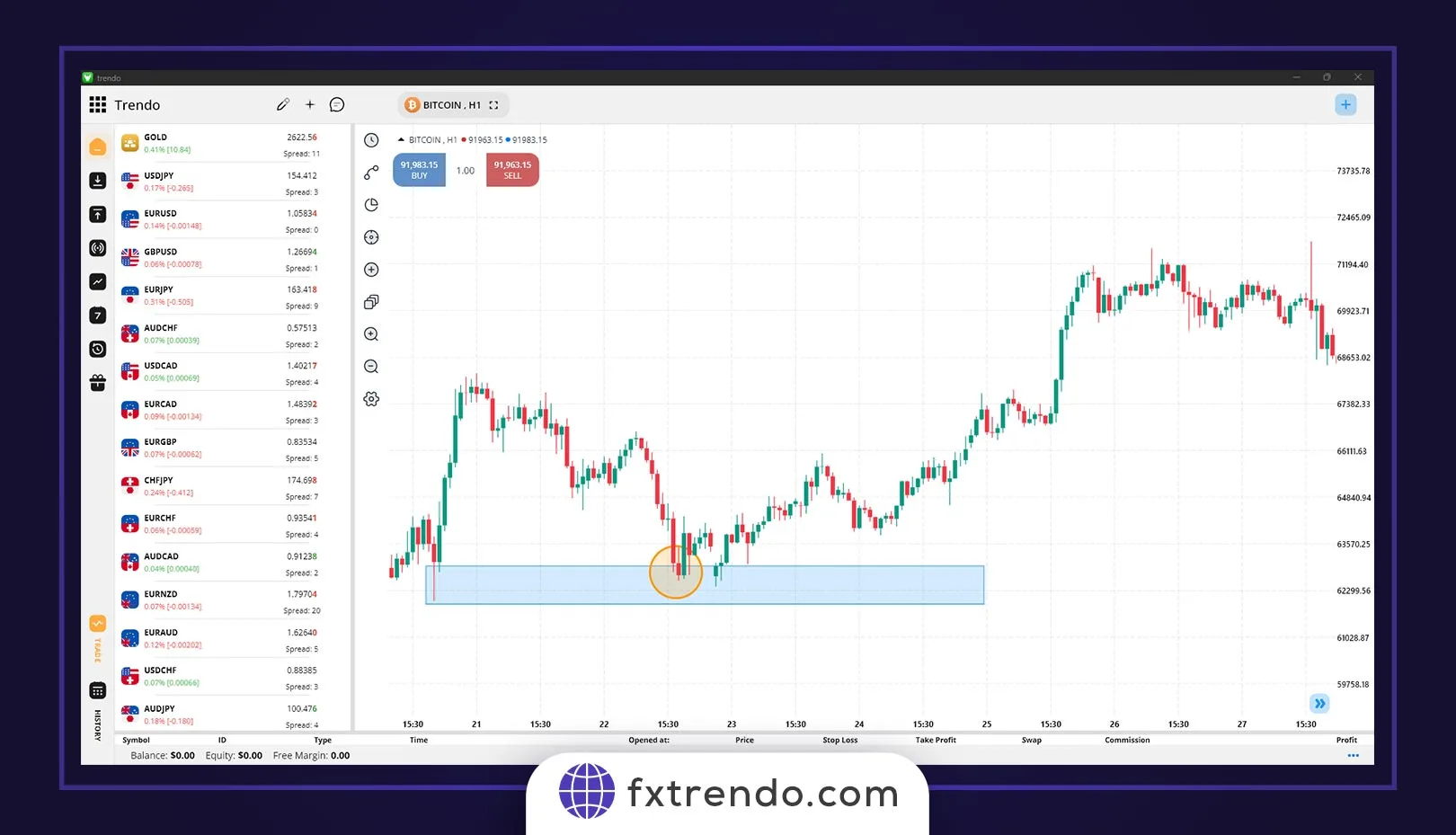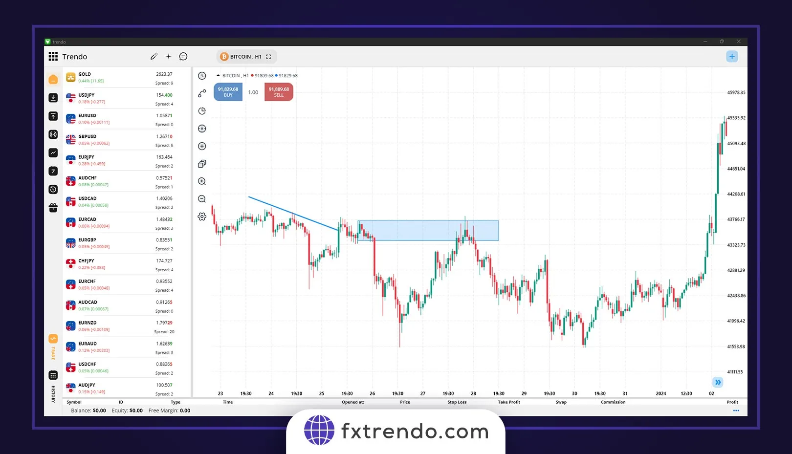 اردر بلاکها را در هر تایمفریمی میتوان شناسایی کرد. در تحلیل تکنیکال، انتخاب تایمفریم معاملاتی به نوع معاملهگری شما بستگی دارد. اگر قصد معاملۀ کوتاهمدت یا روزانه دارید، از تایمفریمهای کوچک مثل پنج یا پانزدهدقیقه استفاده کنید. در غیر این صورت، برای معاملات بلندمدت از تایمفریمهای بزرگتر مثل چهارساعته (H4) یا روزانه (D1) استفاده کنید. بعد از انتخاب تایمفریم مناسب، باید روند مارکت را بررسی و شناسایی کنید. این کار مهمترین بخش از معاملهگری شماست. در این مرحله، مناطقی را که قیمت در آنها واکنشهای مهمی نشان دادهاست را پیدا کنید، مانند: