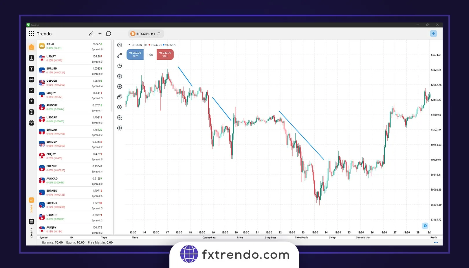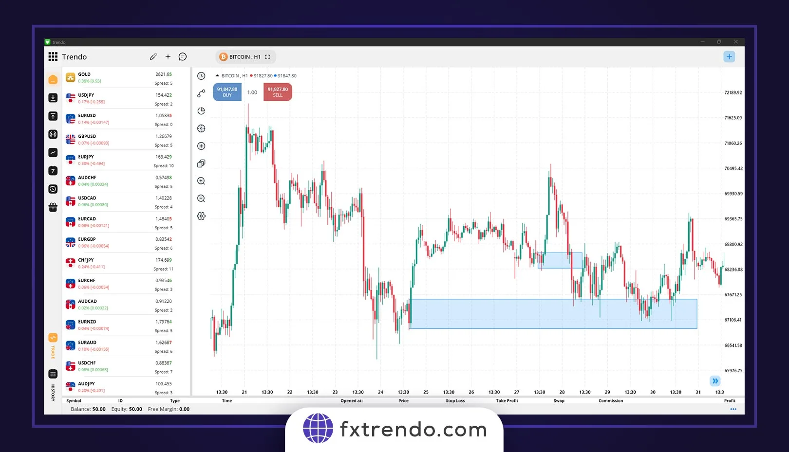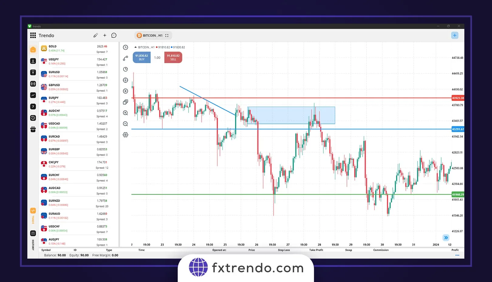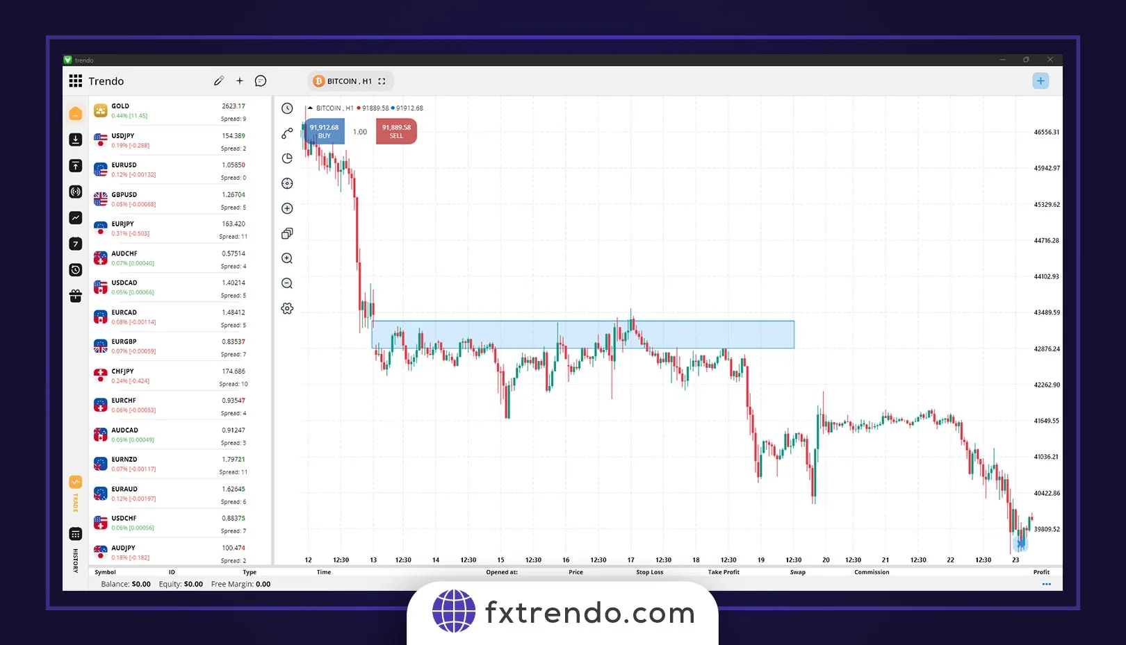 اردر بلاکها را در هر تایمفریمی میتوان شناسایی کرد. در تحلیل تکنیکال، انتخاب تایمفریم معاملاتی به نوع معاملهگری شما بستگی دارد. اگر قصد معاملۀ کوتاهمدت یا روزانه دارید، از تایمفریمهای کوچک مثل پنج یا پانزدهدقیقه استفاده کنید. در غیر این صورت، برای معاملات بلندمدت از تایمفریمهای بزرگتر مثل چهارساعته (H4) یا روزانه (D1) استفاده کنید. بعد از انتخاب تایمفریم مناسب، باید روند مارکت را بررسی و شناسایی کنید. این کار مهمترین بخش از معاملهگری شماست. در این مرحله، مناطقی را که قیمت در آنها واکنشهای مهمی نشان دادهاست را پیدا کنید، مانند: