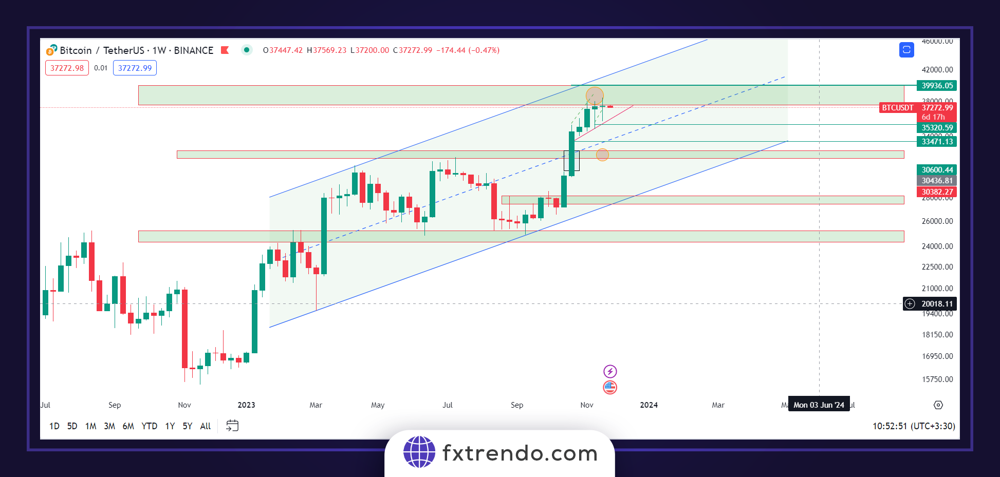 Согласно давлению продаж, созданному в нескольких предыдущих свечах, и пробою 4-часовой линии тренда, существует вероятность падения до отметки 35640 (данный сценарий подходит для осцилляторов).