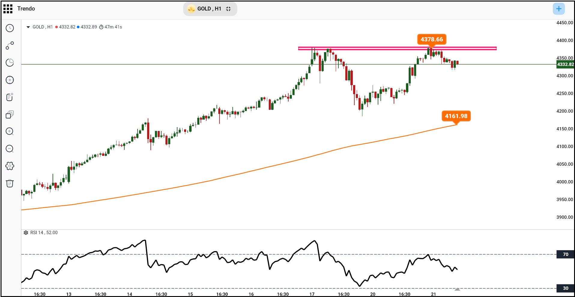 Gold Technical Analysis on Trendo Platform – H1 Timeframe